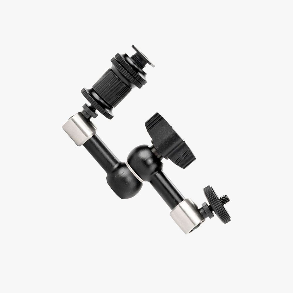 Der Caruba Magic Arm 7″ (18 cm) extra tough ist ein professioneller Gelenkarm zur flexiblen Montage von Zubehör wie LED-Leuchten, Monitoren oder Blitzgeräten. Mit drei Gelenken, einer zentralen Verriegelung und solider Verarbeitung bietet er Stabilität in Studio- und Außeneinsätzen.