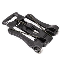Der Wagen kann schnell per Knopfdruck im ergonomisch geformten Griff aufgestellt werden. Nach dem Ausklappen hat der Wagen eine bequeme Höhe, um Ihren schweren Rucksack zu transportieren. Der Rucksack ist mit einer elastischen Bungee Schnur fest mit dem Wagen verbunden. Die beiden sanft drehenden Räder bieten zusätzlichen Komfort. Der Wagen besteht aus robustem Kunststoff und Aluminium. Neben Ihrem Rucksack können Sie natürlich auch andere Dinge wie einen Koffer mit dem Caruba Universal Trolley transportieren.