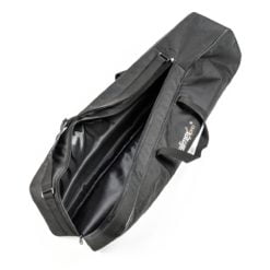 Die Tasche ist ganz in schwarz gehalten und das verwendete Material ist angenehm weich und dabei robust und abriebfest. Die dicke Polsterung sorgt für den nötigen Schutz gegen Stöße und bietet einen hohen Komfort beim Tragen der Tasche. Das rechteckige Profil der Tasche sorgt für viel Platz im Inneren, einen sicheren Stand und ein angenehmes Handling in der Praxis. Durch die 70cm lange Öffnung läßt sich Ihr Equipment besonders bequem entnehmen oder verstauen. Die Stativtasche verfügt über Tragegriffe und einen verstellbaren Schultergurt.